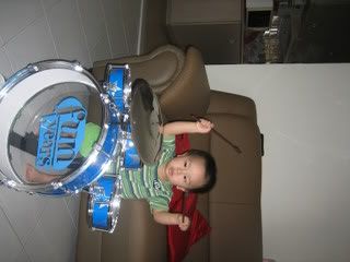 Many thanks to my cousin, Joan for passing us Clare's drumset to Dillion. And he is loving it to bits as he will play with it every day!